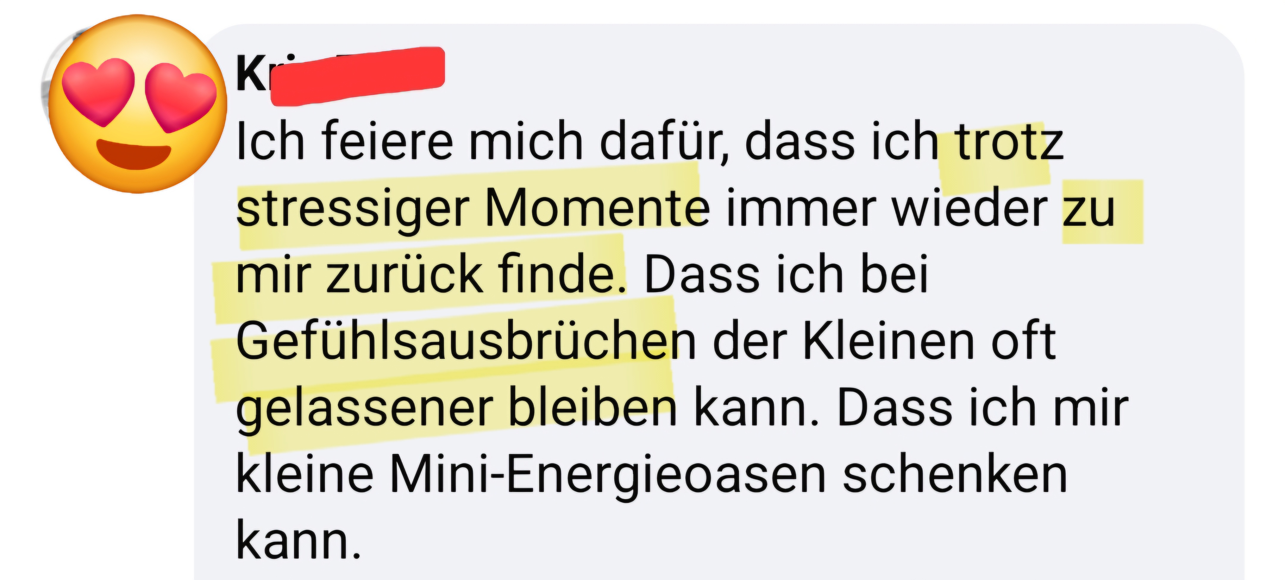 Dass dein Wissen aus Büchern und Podcasts vom Kopf im Körper landet und du es im st*nknormalen Alltag mit Kindern auch anwenden kannst 🧘♀️